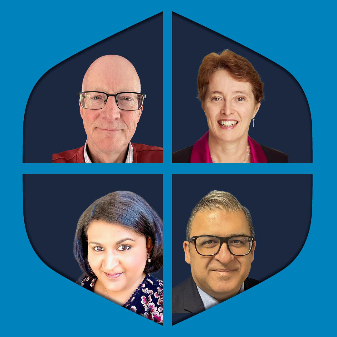 Image: The four new RCP councillors. Top: Patrick Davey, Gina Allen. Bottom: Shruthi Konda and Asif Qasim.
